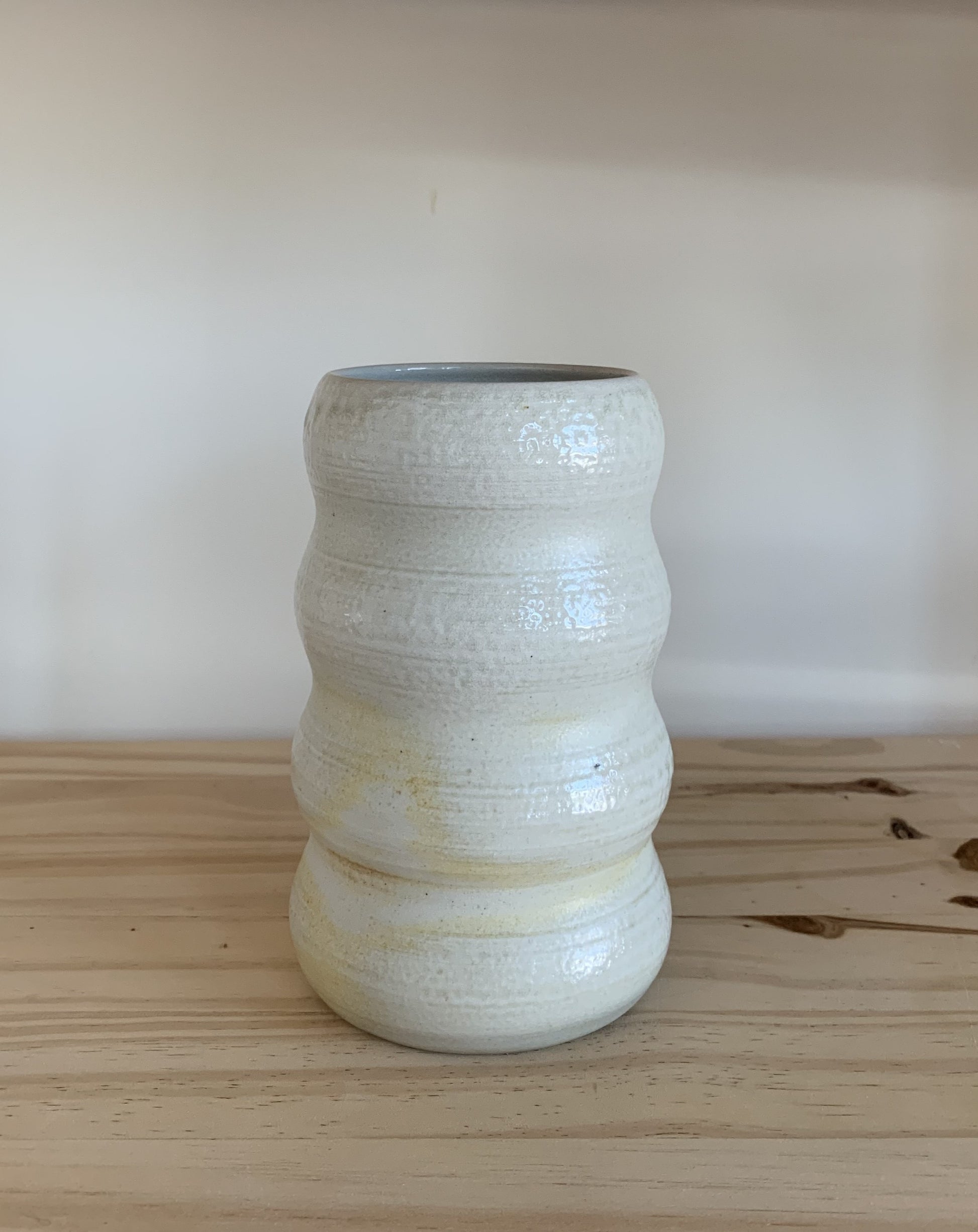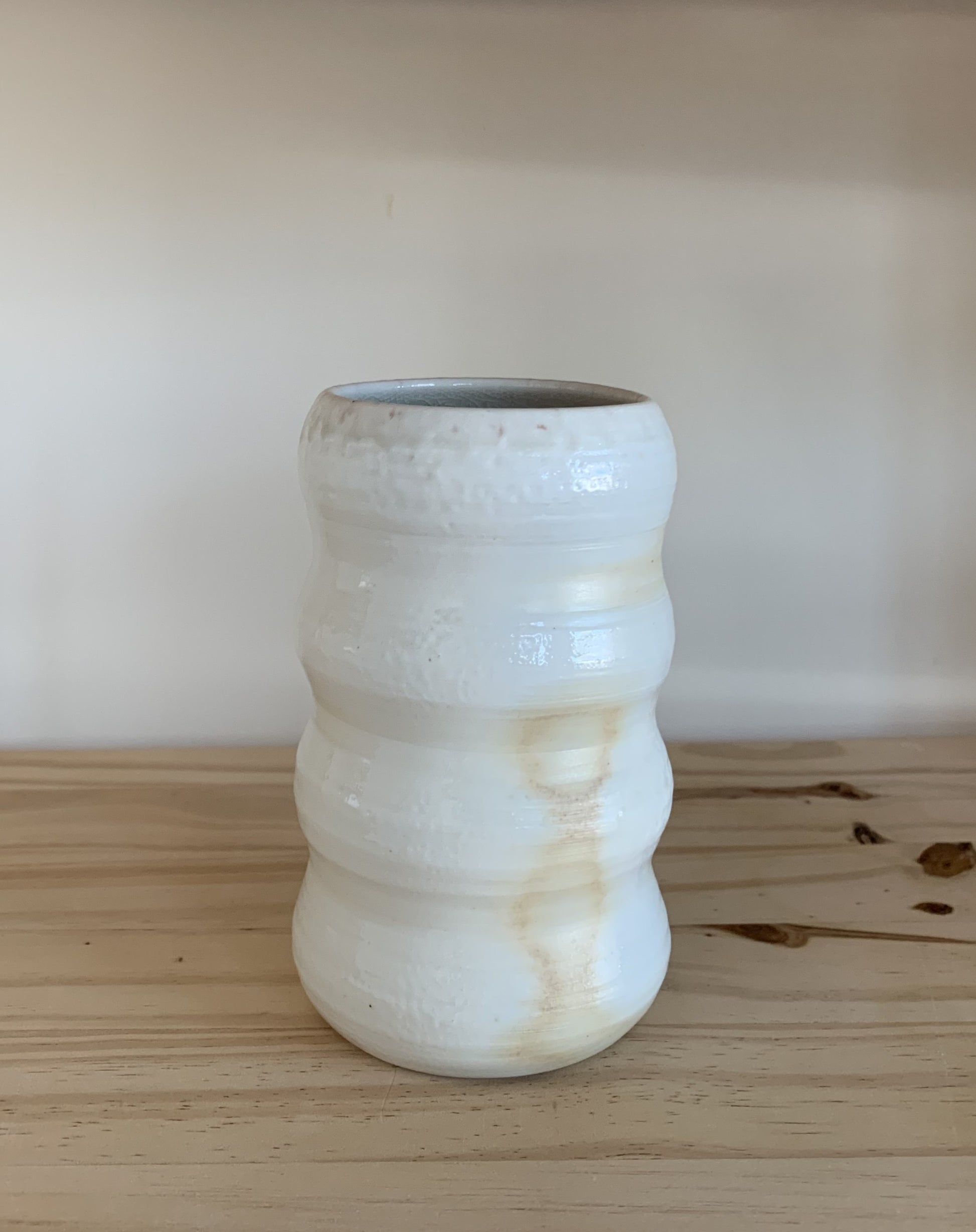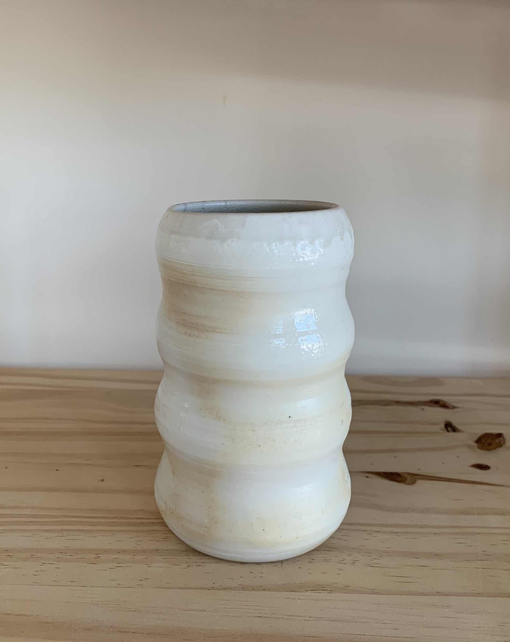 These porcelain wood fired bubble vases are part of our special wood fired collection. Hand crafted on the pottery wheel, these vases are fired in a special wood powered kiln to give the unique color palette. The colors and shine are the effect of wood ash, flame, and soda vaporizing in the kiln, travelling on the flames and landing on pots throughout the kiln. Due to this unique way of firing, each piece is 100% unique and cannot be replicated. These vessels are earthy, subtle and beautifully organic.