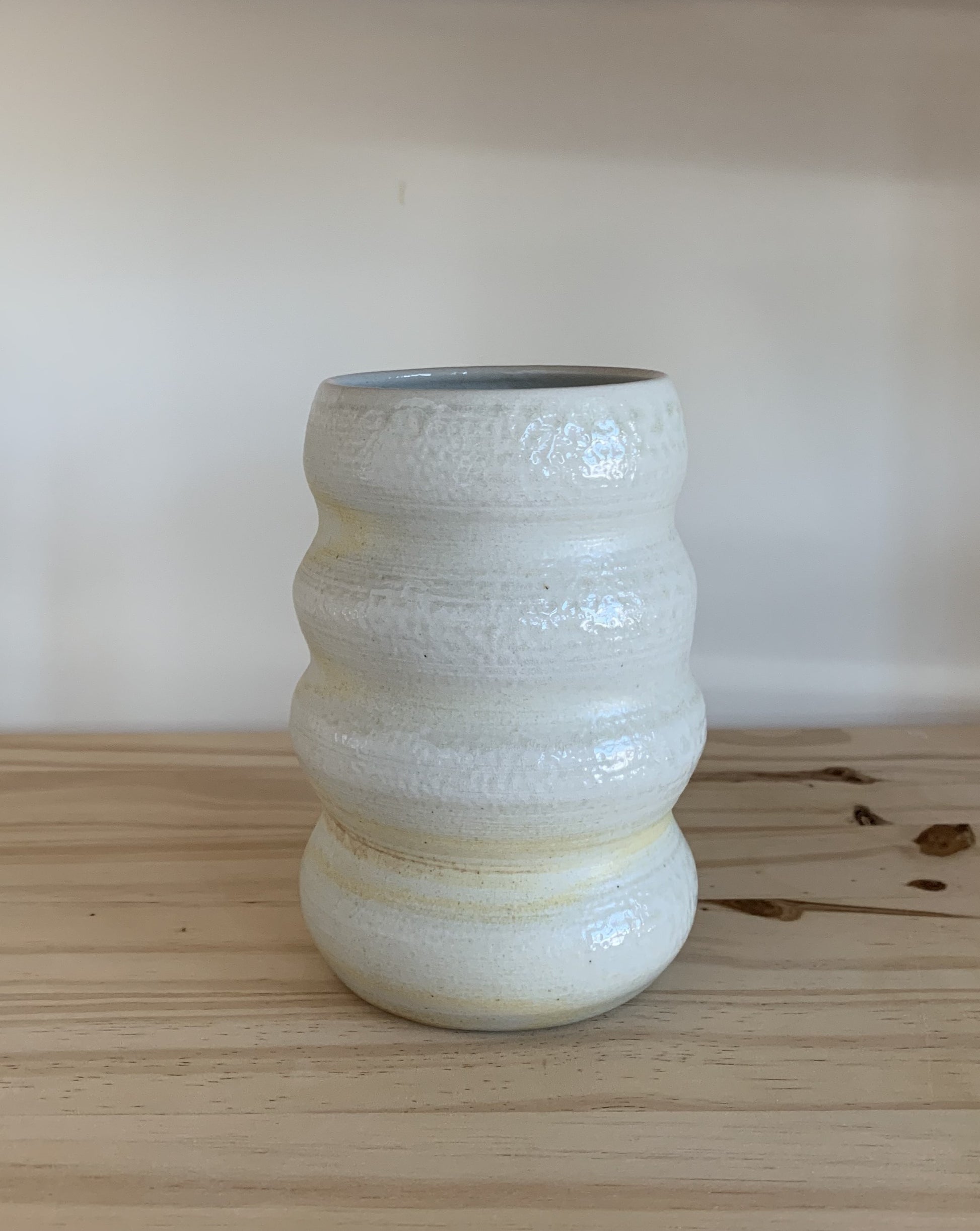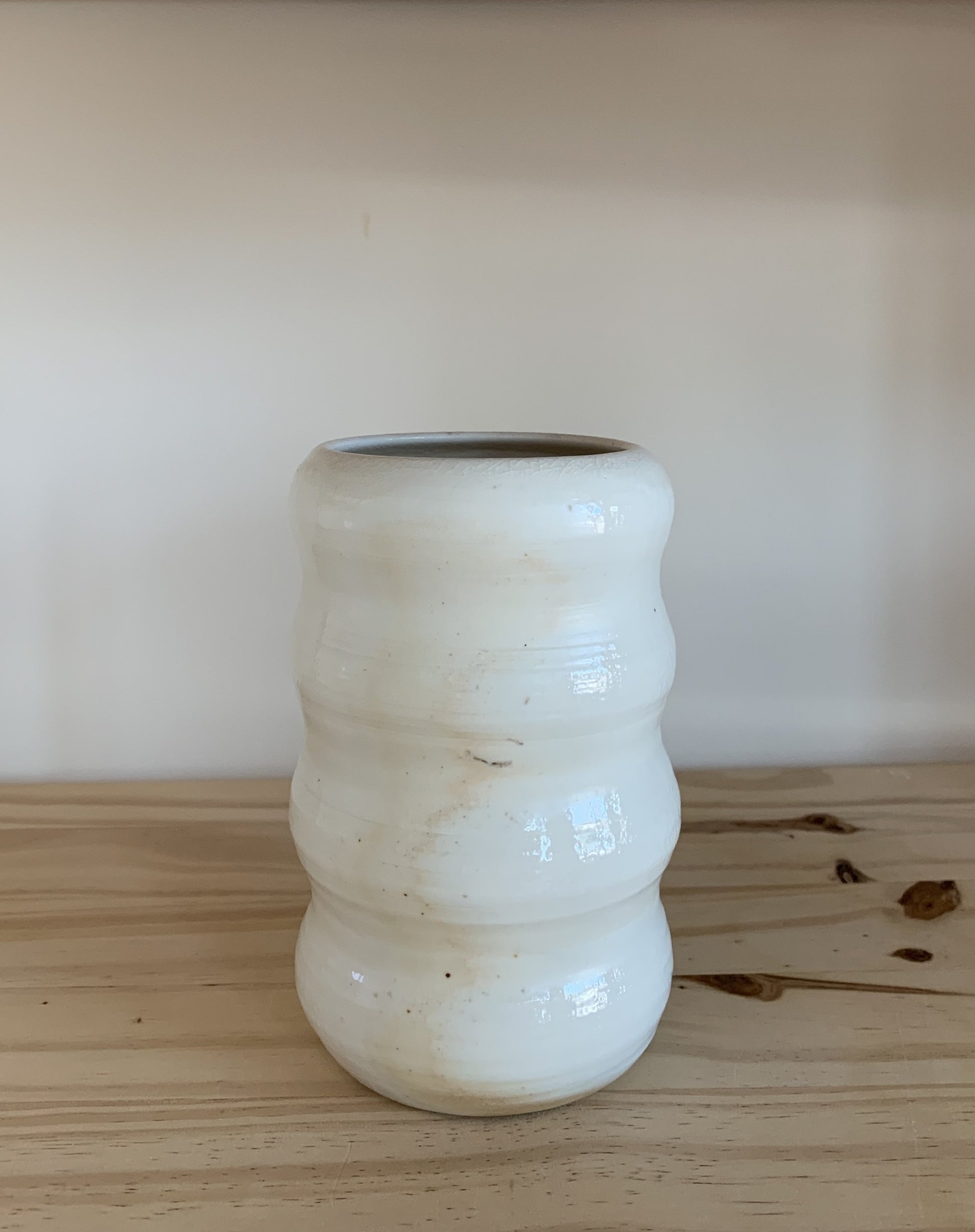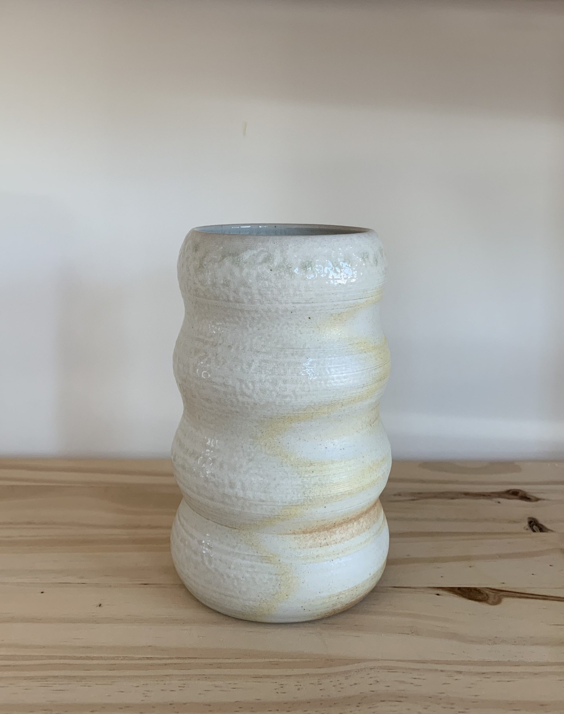 These porcelain wood fired bubble vases are part of our special wood fired collection. Hand crafted on the pottery wheel, these vases are fired in a special wood powered kiln to give the unique color palette. The colors and shine are the effect of wood ash, flame, and soda vaporizing in the kiln, travelling on the flames and landing on pots throughout the kiln. Due to this unique way of firing, each piece is 100% unique and cannot be replicated. These vessels are earthy, subtle and beautifully organic.