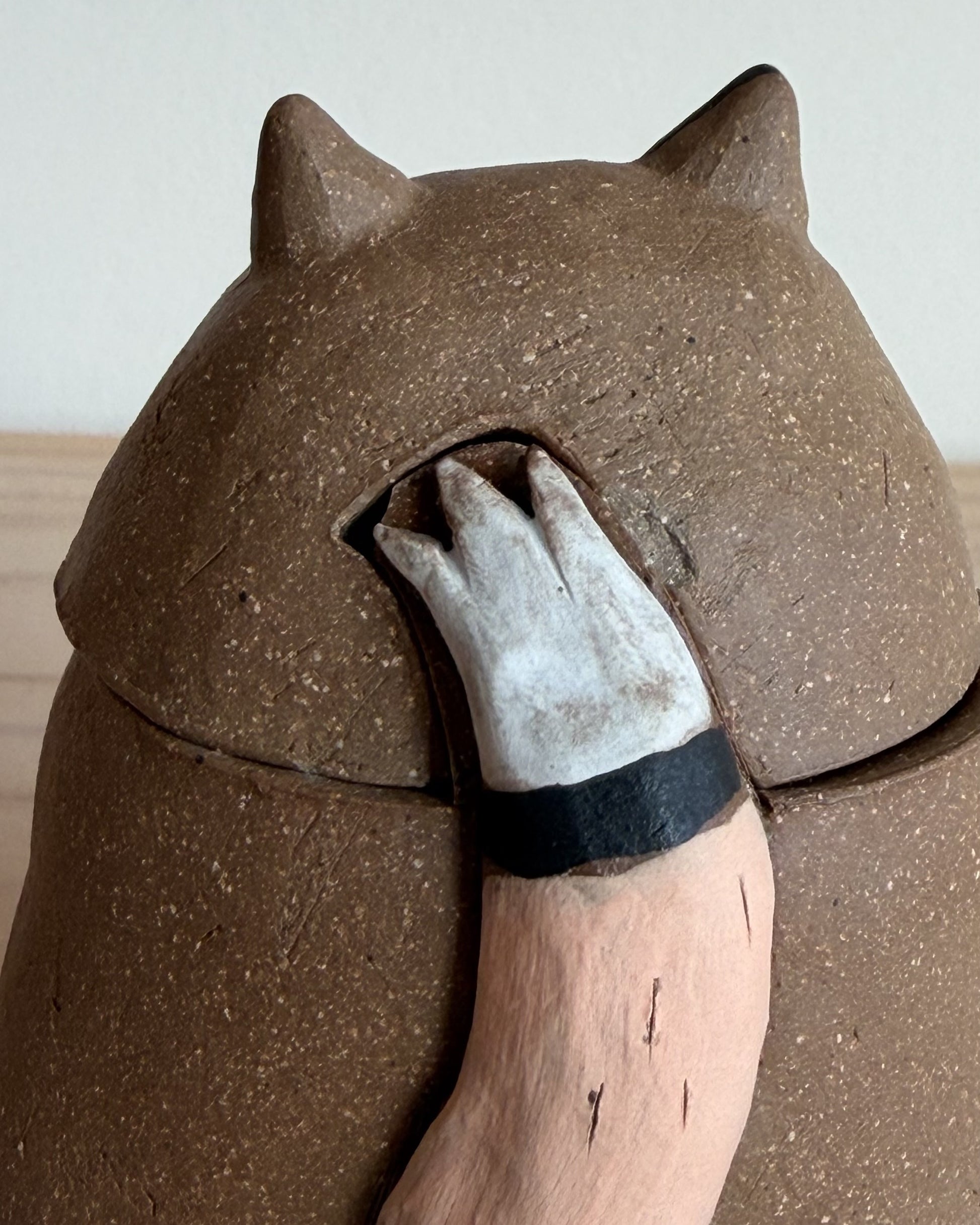 These pieces are SECONDS meaning they are imperfect and FINAL SALE - this critter jar has 2 chips at the tail (see photo), and the lid doesn't sit quite flush to the jar. It is clear glazed on the interior and fully functional