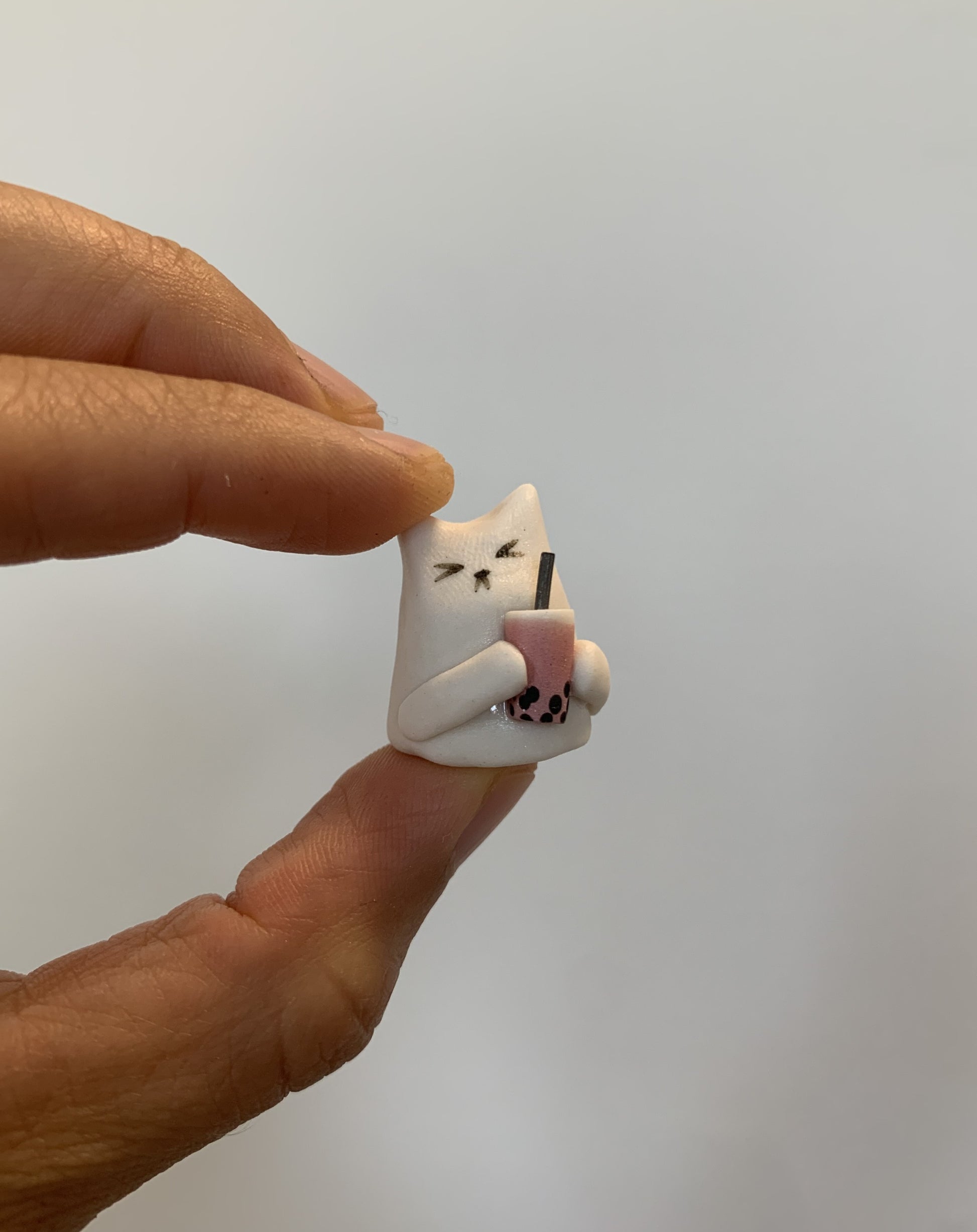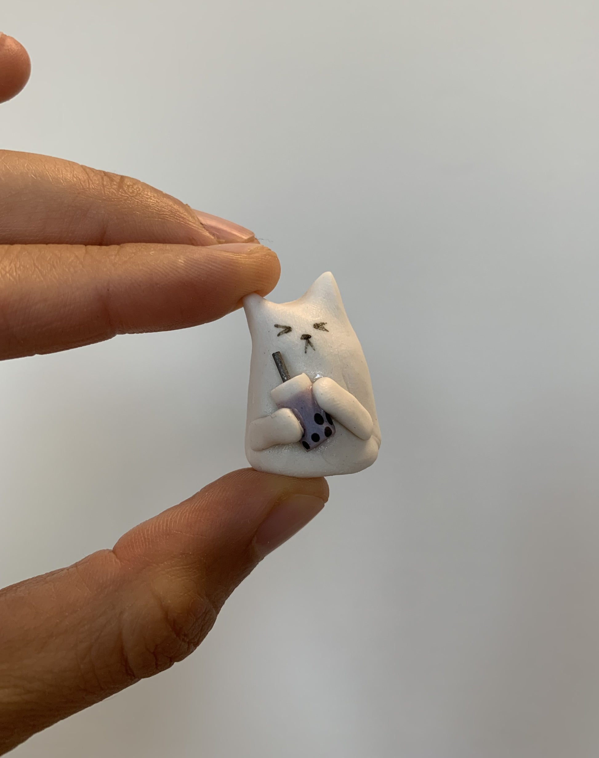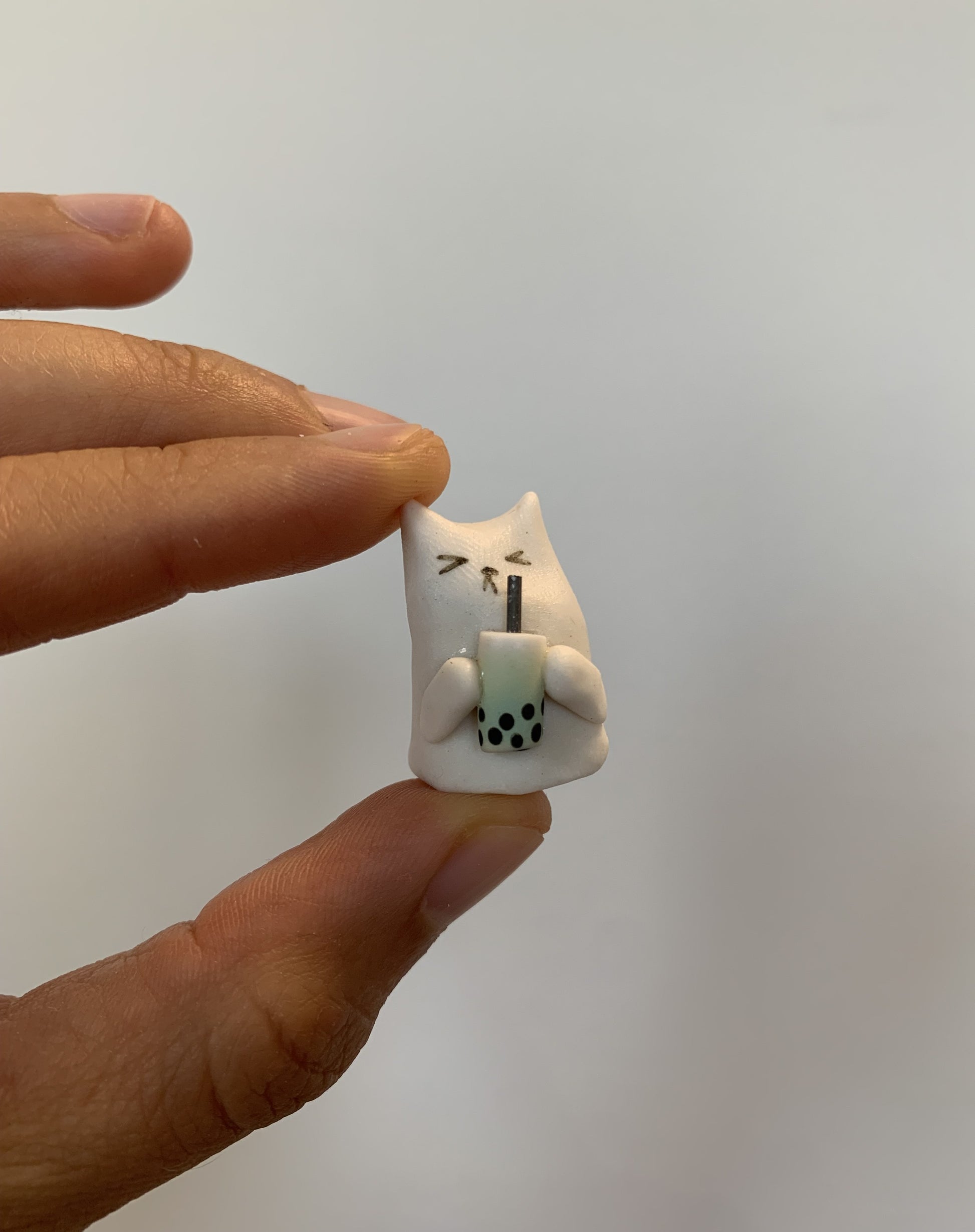 These are the last few limited edition cats that were made for an Asian market this summer--cool off with a favorite Asian treat, boba! Complete with a metal boba straw, these minis come in 3 flavors: strawberry (pink), matcha (green) and ube (purple)! Ranging from 3/4 to 1 inch, each is handmade and unique.