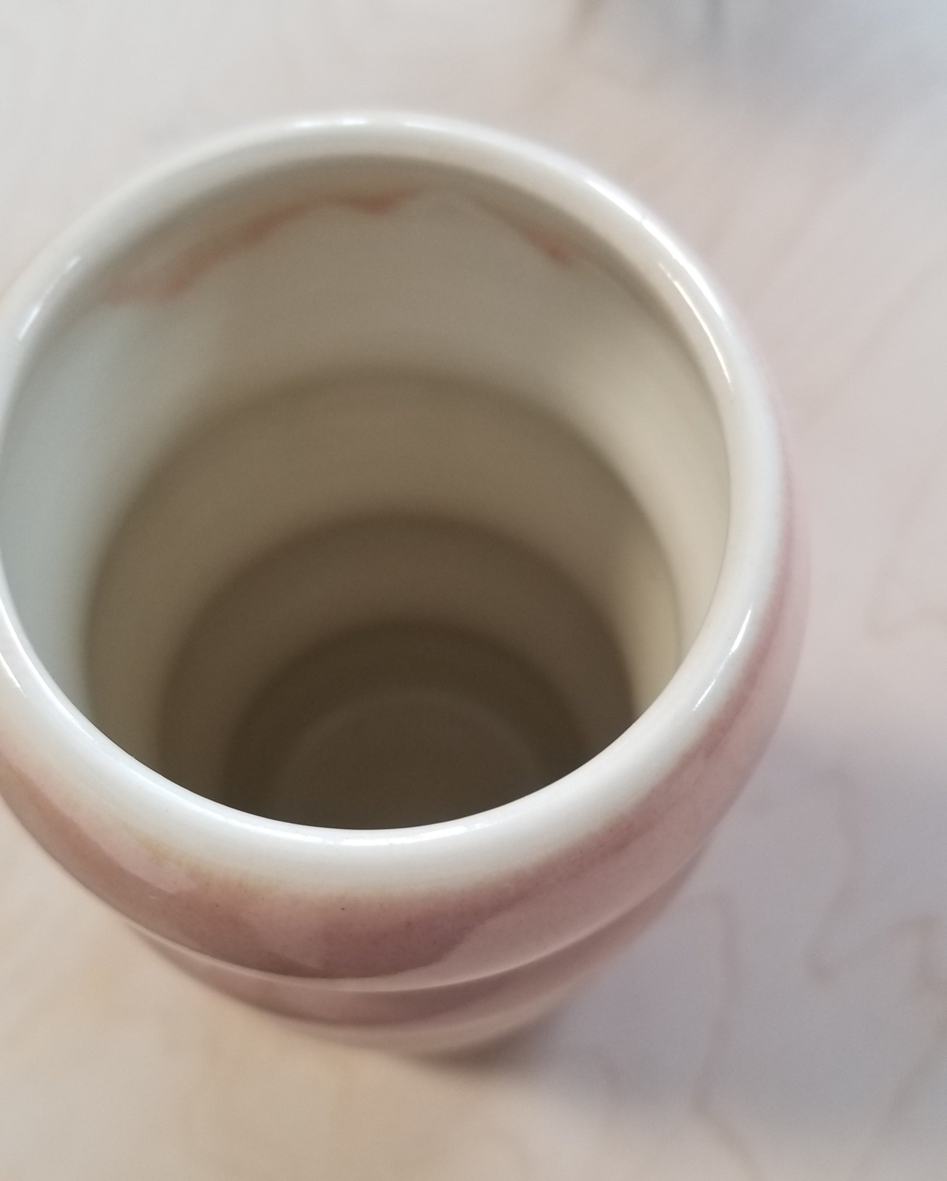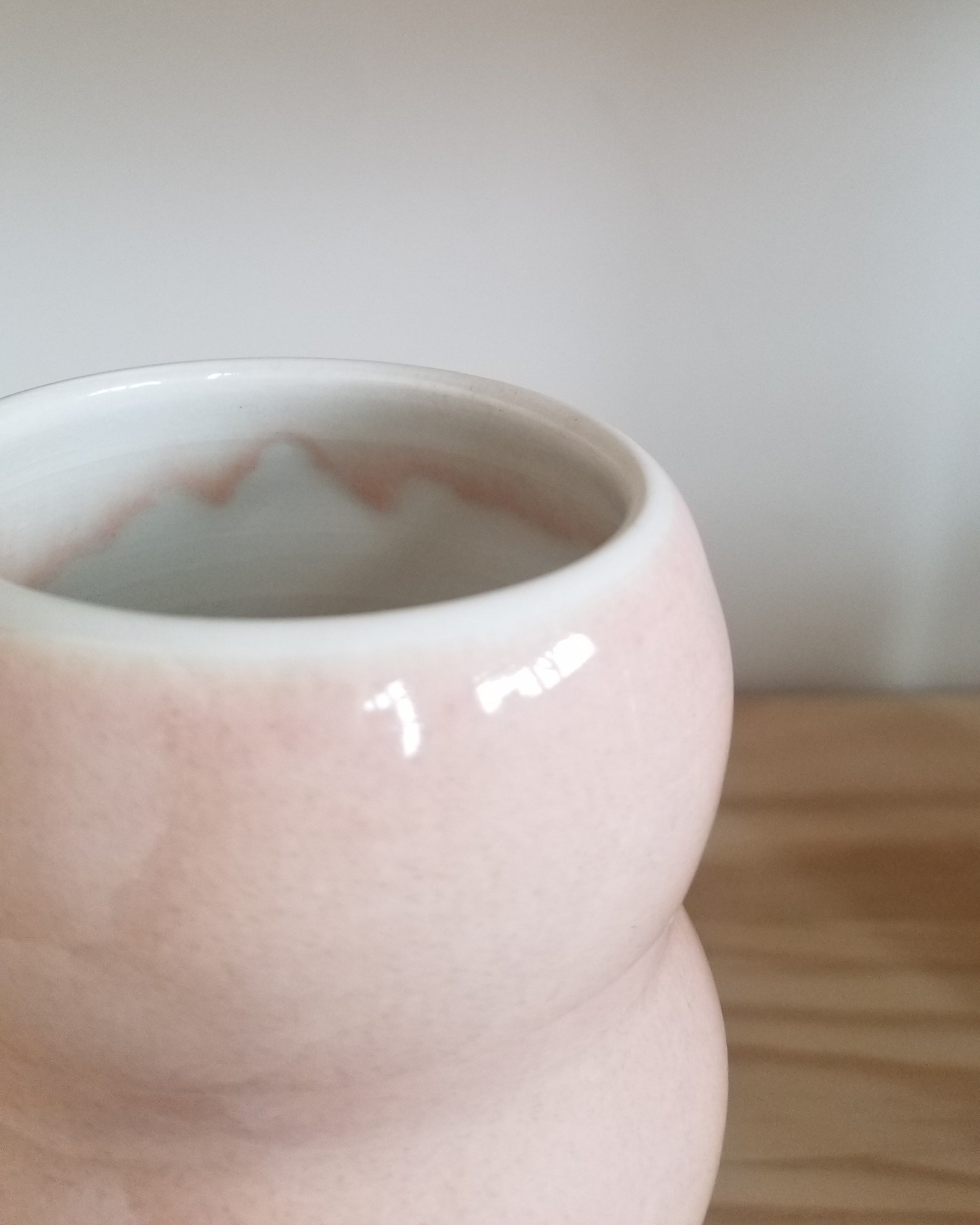 Vase B: The four curves of this vase are finished with our newest glossy blush glaze. It measures approximately 6.75" tall and 3" wide.