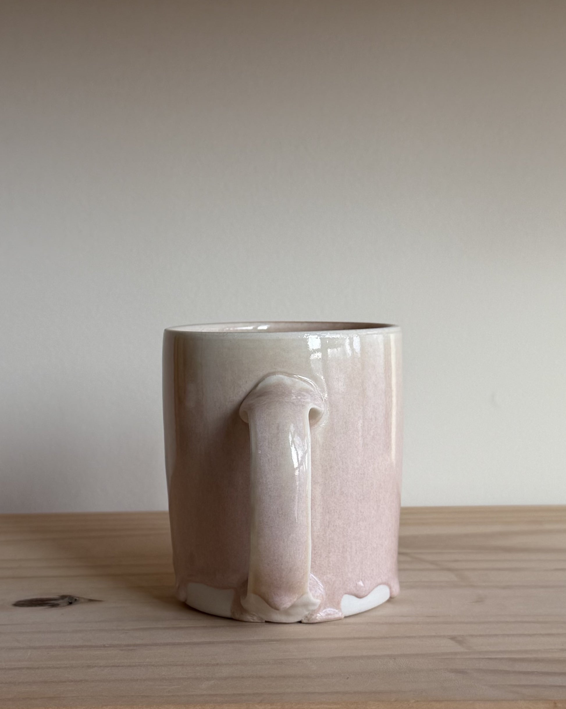 These pieces are SECONDS meaning they are imperfect and FINAL SALE - the glaze on this mug got drippy and a few dripped all the way down, meaning they needed to be sanded to soften the sharp edges.