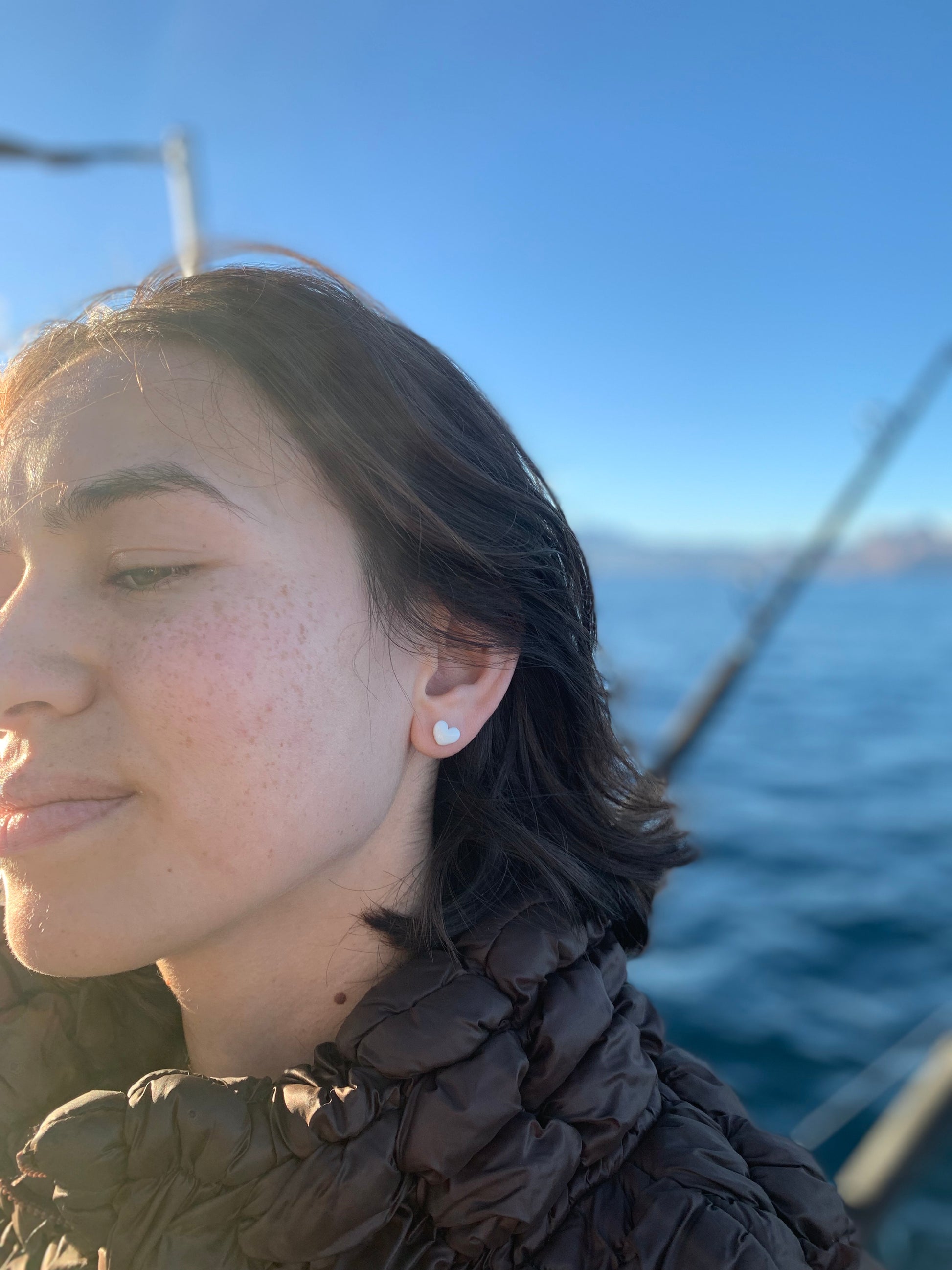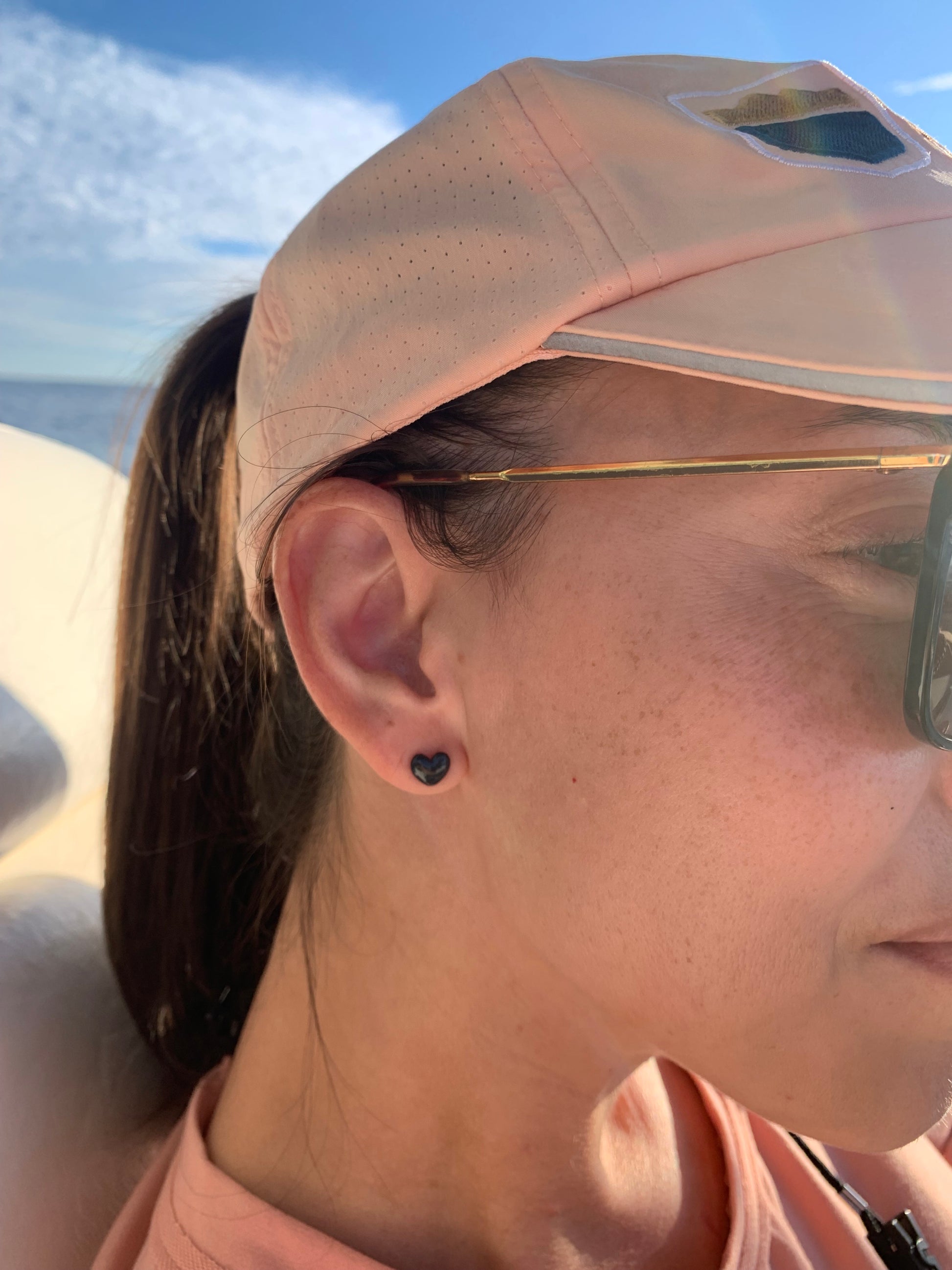 Porcelain heart studs come in a variety of colors. They are lightweight and hand formed from white or stained porcelain. Hardware is hypoallergenic titanium.