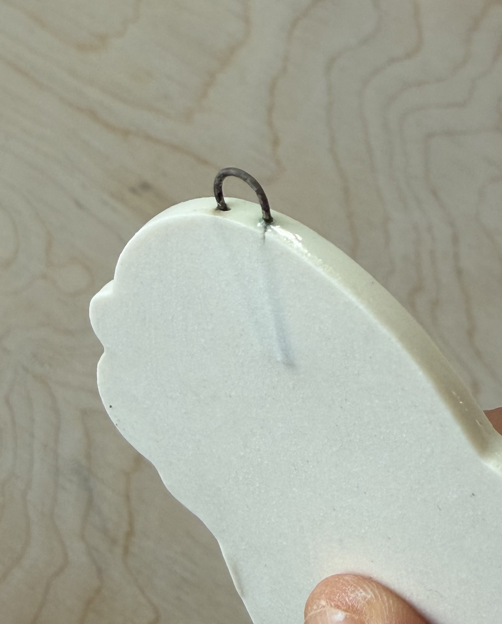 These pieces are SECONDS meaning they are imperfect and FINAL SALE - this ornament has the tiniest crack at the metal hook (see photo). This does not affect the strength of of the hook