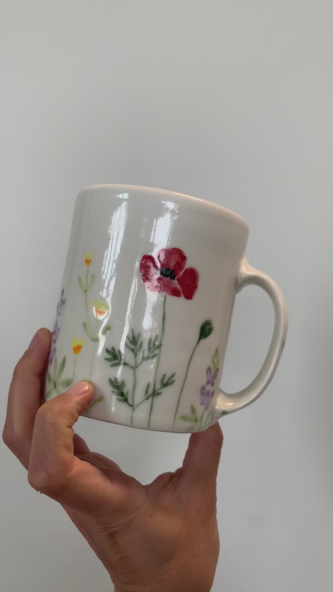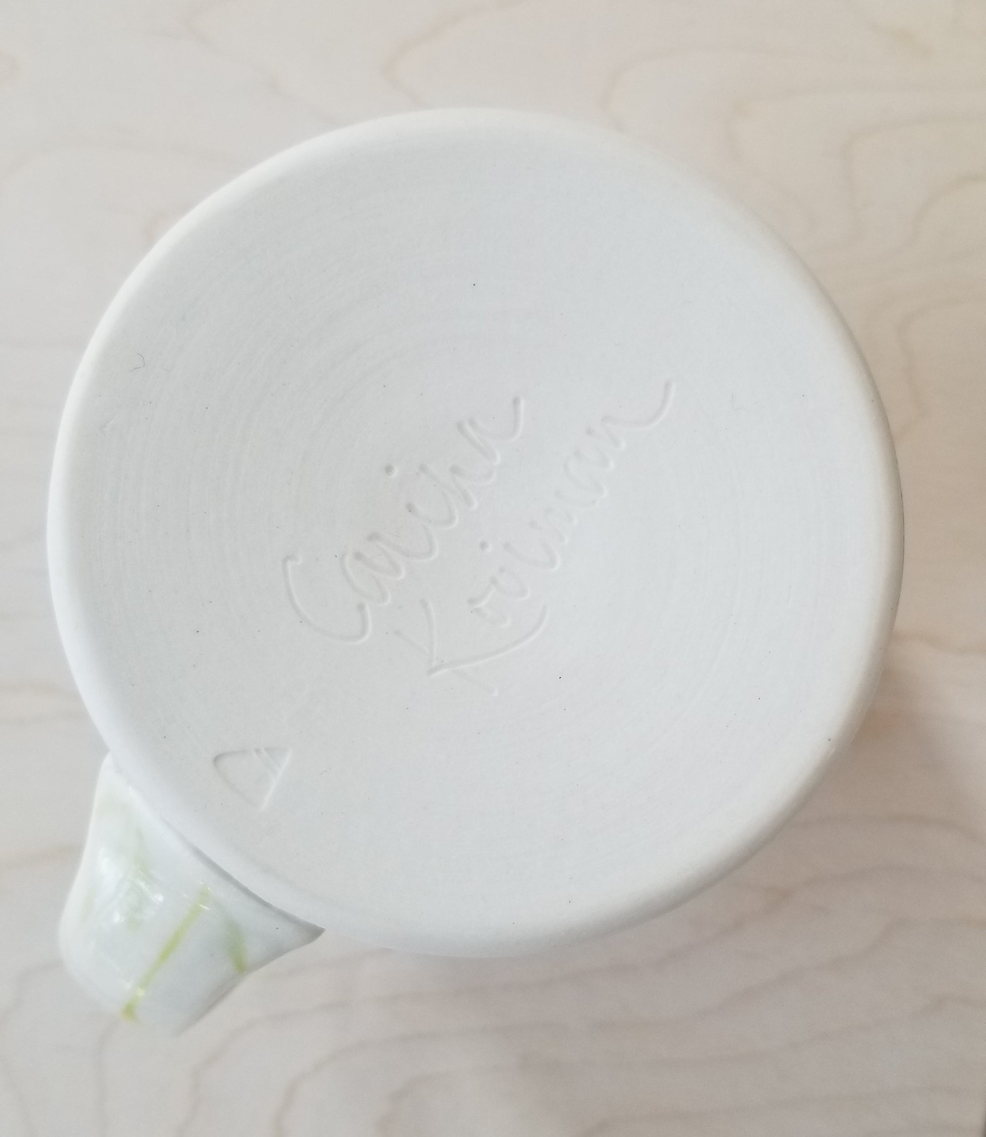 This porcelain mug is truly one of a kind. Each mug is hand thrown and handled before being painted with underglaze for a watercolor effect. Even the handle has a little flower detail! Great for your morning cup of coffee, a late night sleepytime tea, or a serving of soup when you’re out of bowls. Enjoy a custom Carina Kooiman painting every time you use your mug!